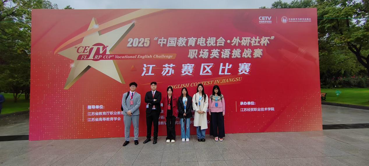 2025“中国教育电视台・外研社杯”职场英语挑战赛江苏赛区比赛于2025年11月9日在江苏经贸职业技术学院圆满收官。我校高度重视此次赛事,组建了由张永文、章妍、史胜翠、白杨等四人组成的指导教师团队,经过层层选拔,派出6名选手参赛。在高强度的比拼中,我校学子凭借扎实的英语功底、出色的职场应用能力和稳定的现场发挥脱颖而出,创下我校在此项赛事中的最佳战绩,实现历史性突破。在写作比赛中,郭笑朵同学荣获省赛特等奖,臧文清、陈怡萱同学分别荣获省赛二、三等奖。郭笑朵同学于12月6日代表江苏省出征全国总决赛,获得全国特等奖。演讲比赛赛场同样捷报频传,孙顾涵荣获省赛一等奖,岳星彤、汤司晨同学荣获省赛三等奖。